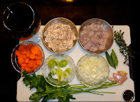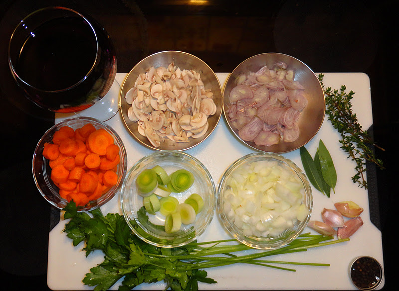 included a bottle of red wine, onion, carrot, shallots, leeks, button