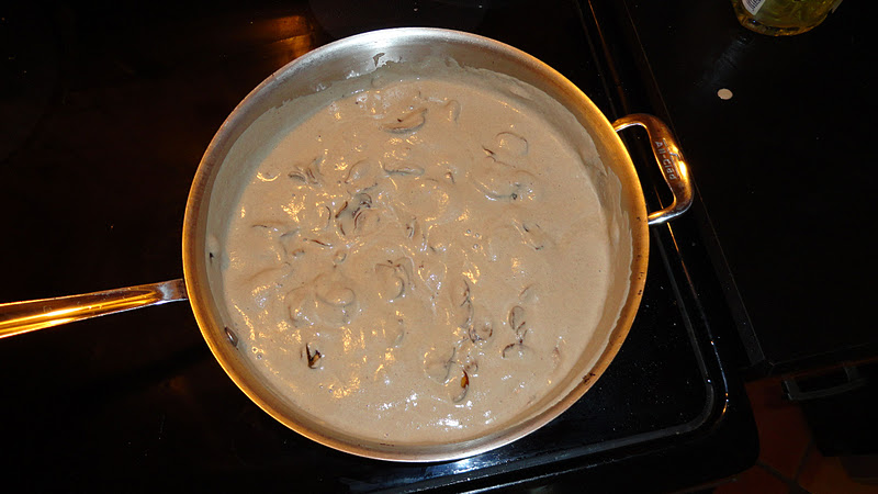 The cream sauce involved chopping a pound of Cremini