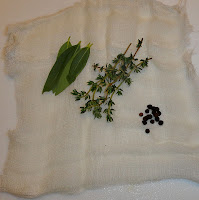 a little packet of thyme, bay leaves, and peppercorns wrapped in a little