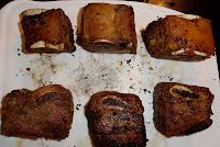ribs from the remaining liquid. I cut the short ribs into 1-2 inch cubes and