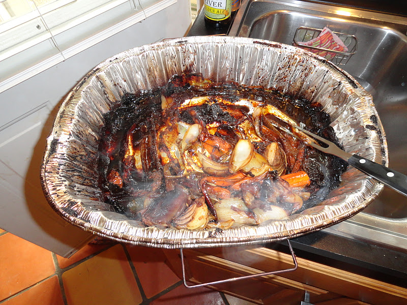 warm coals from the pork loin I grilled the night before. The issue is that I wasn't able to clean out the grill from the night