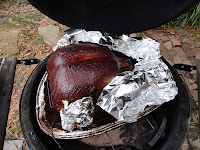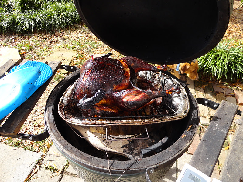 This was my third year smoking a turkey on the Green Egg and every year gets better. The key is managing your temperature, proper use of foil, and damn hot bloody marys.