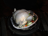I didn't end up getting the bird on until 6:20, which was 20 minutes later than I hoped. Plus, after putting the bird in, I couldn't get the temperature back up to 325 for almost the first hour. I had a feeling, I would be a bit late.