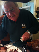 Okay, now for the turkey. I am not sure if this is a North vs. South thing, or just family differences, but the main difference between the Thanksgiving's I remember growing up and the Abernathy Thanksgiving is the timing. Up North, we had ours at about 4pm. We spent the day watching football, while my mom slaved away in the kitchen and then ate in the early evening. Here in Memphis, everybody shows up at about 11 and we eat shortly after noon. Then we take a nice afternoon nap in front of the TV watching football, while my wife and mother-in-law slave away cleaning.