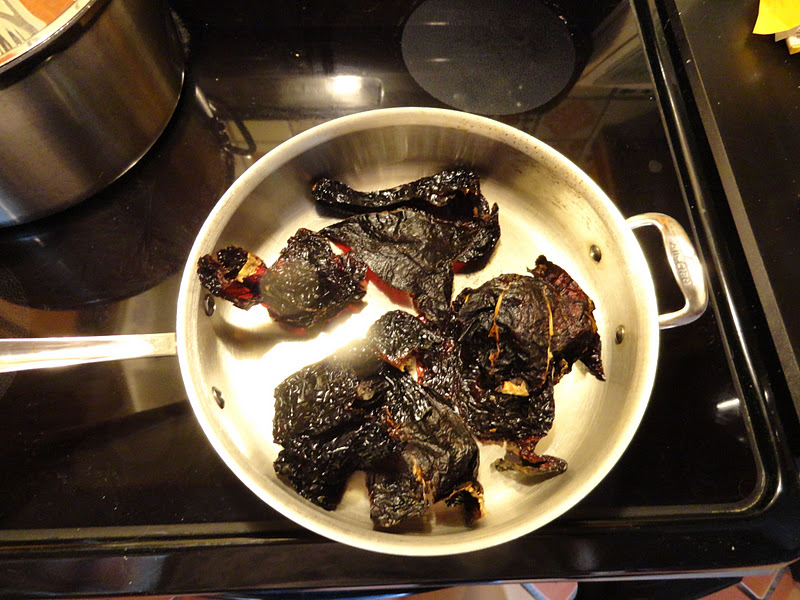 Meanwhile, I used dried Ancho peppers and dried cayenne pepper for the base of the chili paste. The Ancho pepper has a coffee aftertaste to them. There are a number of other peppers you could use that provide different flavors, sort of like a wine. I also like to use Pasilla, Mulato, and the smoky Chipotle.