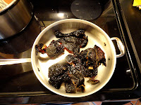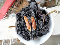 Before grinding them up, I added oregano, cumin, some cornmeal (to thicken the chili), and cocoa powder. I actually used a special cocoa powder from the African region of Yoruba. It is has a slightly spicy flavor. I found it at a spice store call