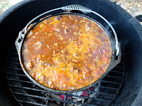 I then closed the lid of the Big Green Egg and cooked the chili at 300 degrees for almost two hours.