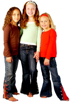 Posted: 23 Oct 2009 05:07 AM PDT ![]() Now your girls, 'tweens and teens can mix and match to suit their moods! Our custom flare jeans are offered in two styles: regular Sassy Belle™ Jeans and Embroidered Sassy Belle™ Jeans. The regular girl flare jeans are $45, are plain in front and feature embroidered back pockets. The embroidered Sassy Belle™ girl flare jeans feature flower embroidery on the top of the right leg plus embroidered back pockets and are $50. |