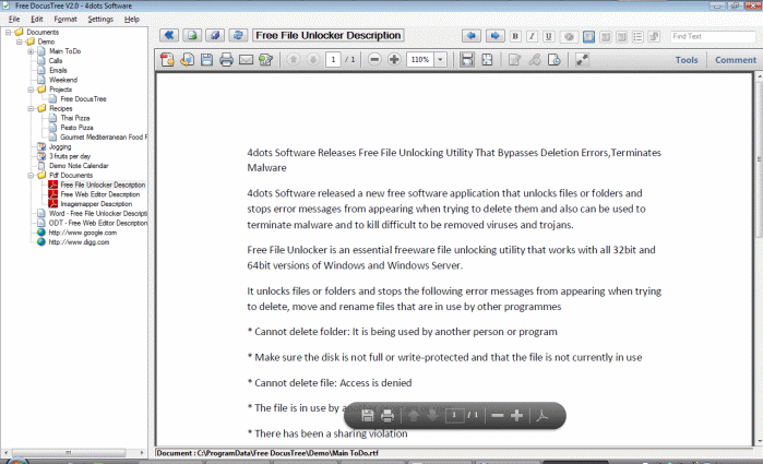 Free DocusTree v3.4 - 1464 KB
