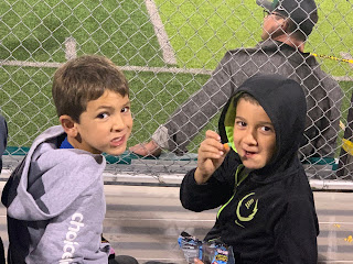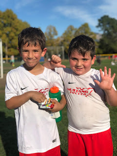 Quinn and Byron at soccer. Byron subbed on Quinn's team for a few games!