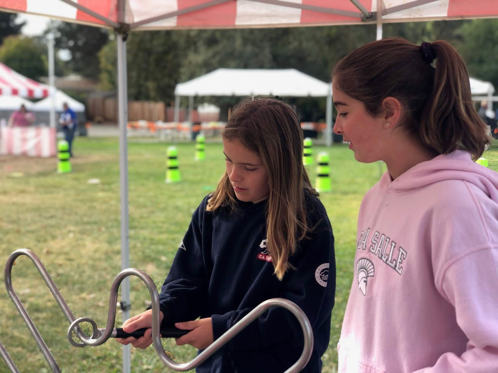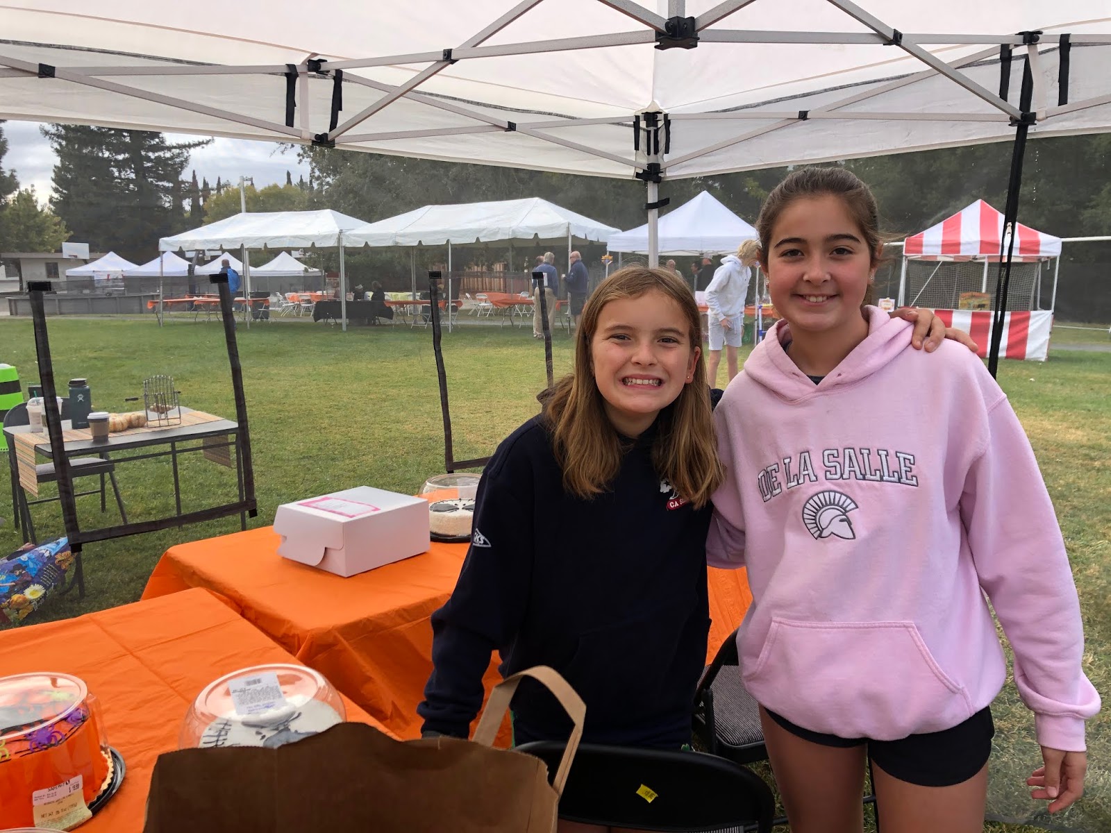 Grace and Maeve volunteering at the St. Isidore Fall Festival