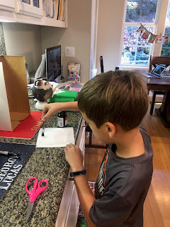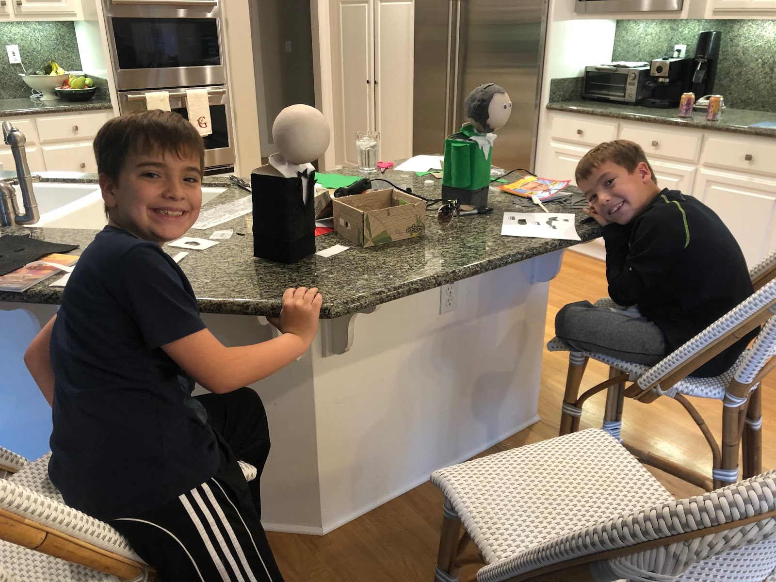 Working on their 3rd grade "Milk Carton Projects" - Brady did his on "Stan Lee," and Hayden did his on "George Lucas"
