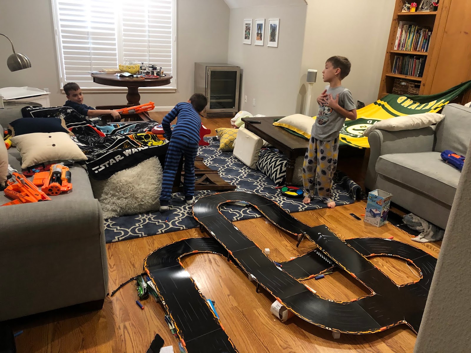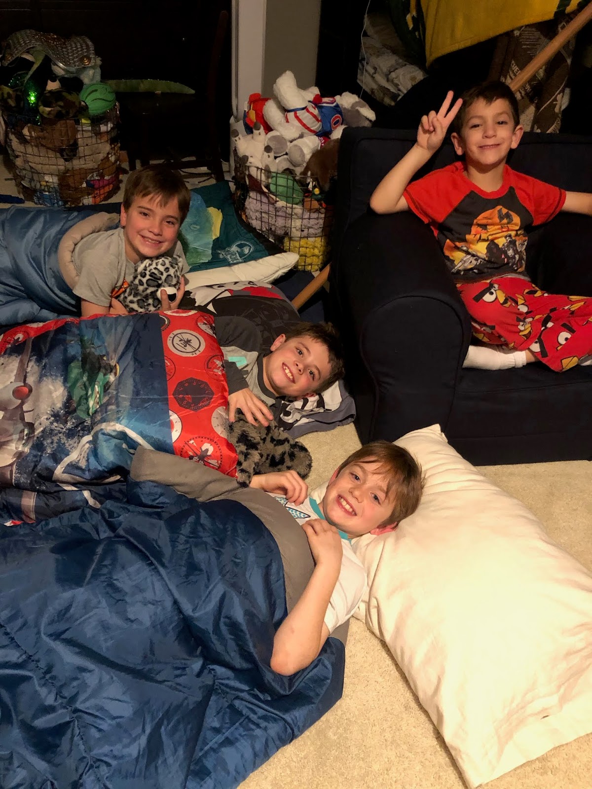 Brady and Hayden had Andrew and Kellen over for a sleepover, and Robbie and her girls came over to have a pizza party with us...