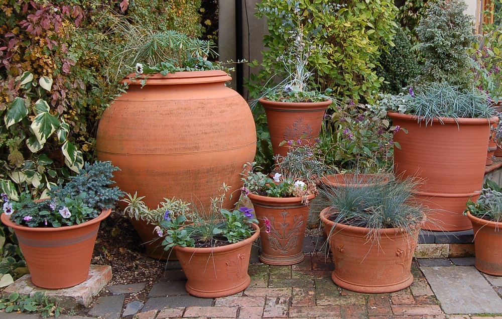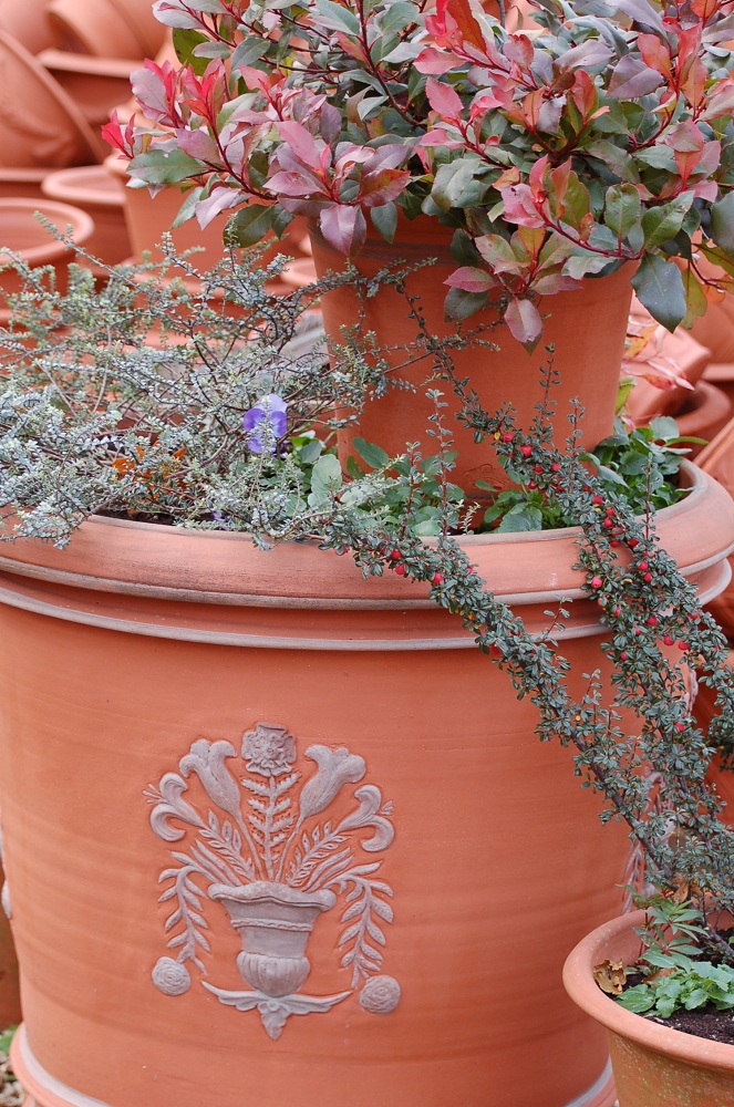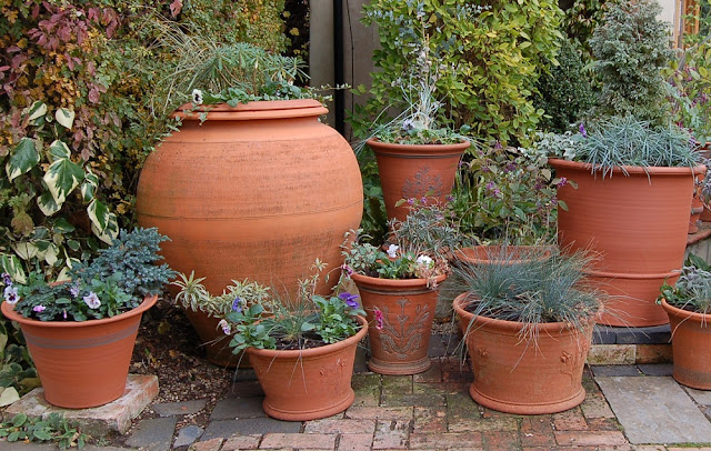 I really shouldn't say this but at this time of year I think the pots look just as good empty - the low sunshine (when we get it) shows off the details beautifully and makes the terracotta glow.