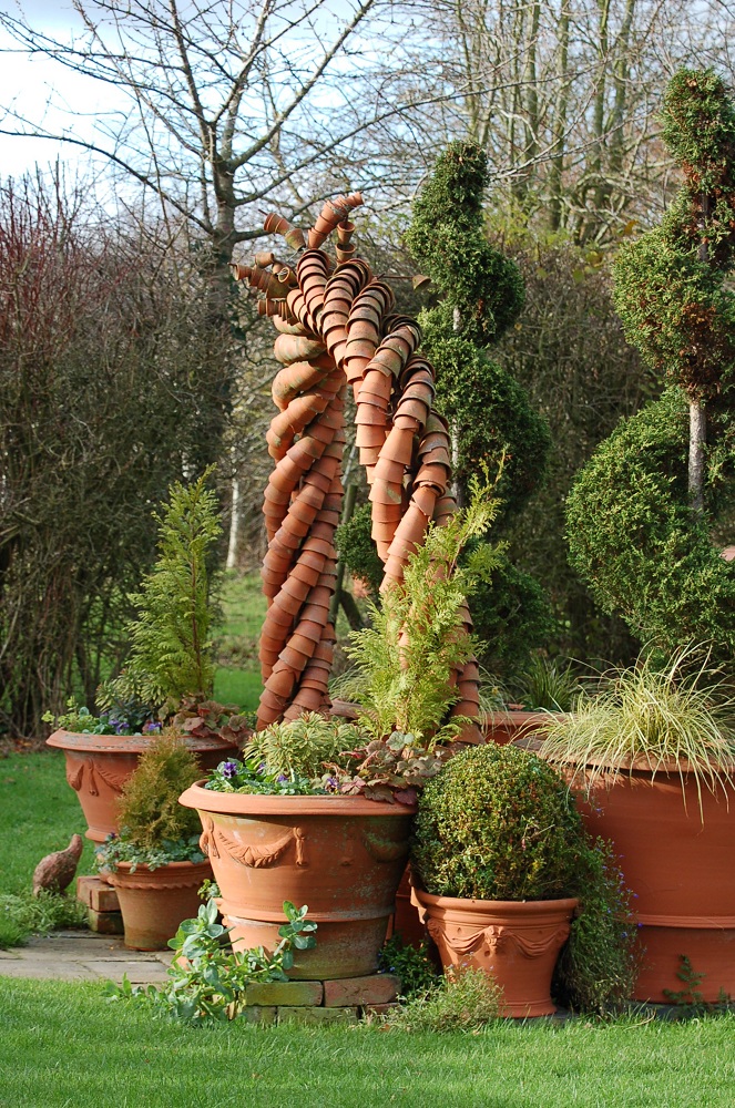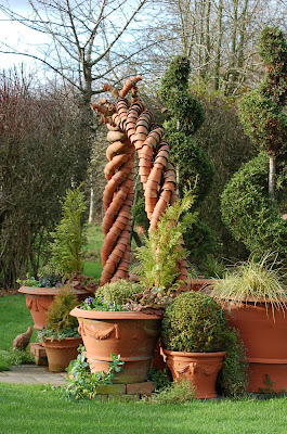 The picture below shows part of this winter's courtyard display - the Giant Jar has another pot in the top, so that it can be planted, but it would look just as good empty or with some spectacular branches or seedheads arranged in the top.