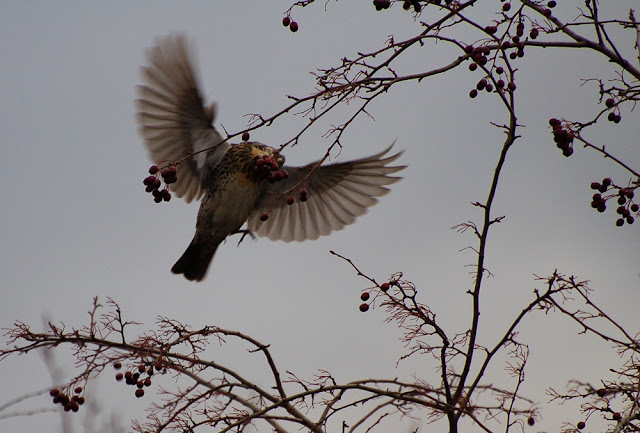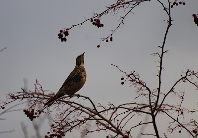 On Thursday the weather had calmed and as a result there were birds everywhere, stuffing their faces as fast as they could before the next bout of sleet. I wandered about with my camera for twenty minutes and in that time I saw redwings, fieldfares, bluetits, great tits, robins, coal tits, long-tailed tits, a green woodpecker, pigeons, rooks, a buzzard, blackbirds, a bullfinch, a linnet and I could hear pheasants and a mistle thrush. Not bad.