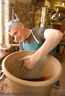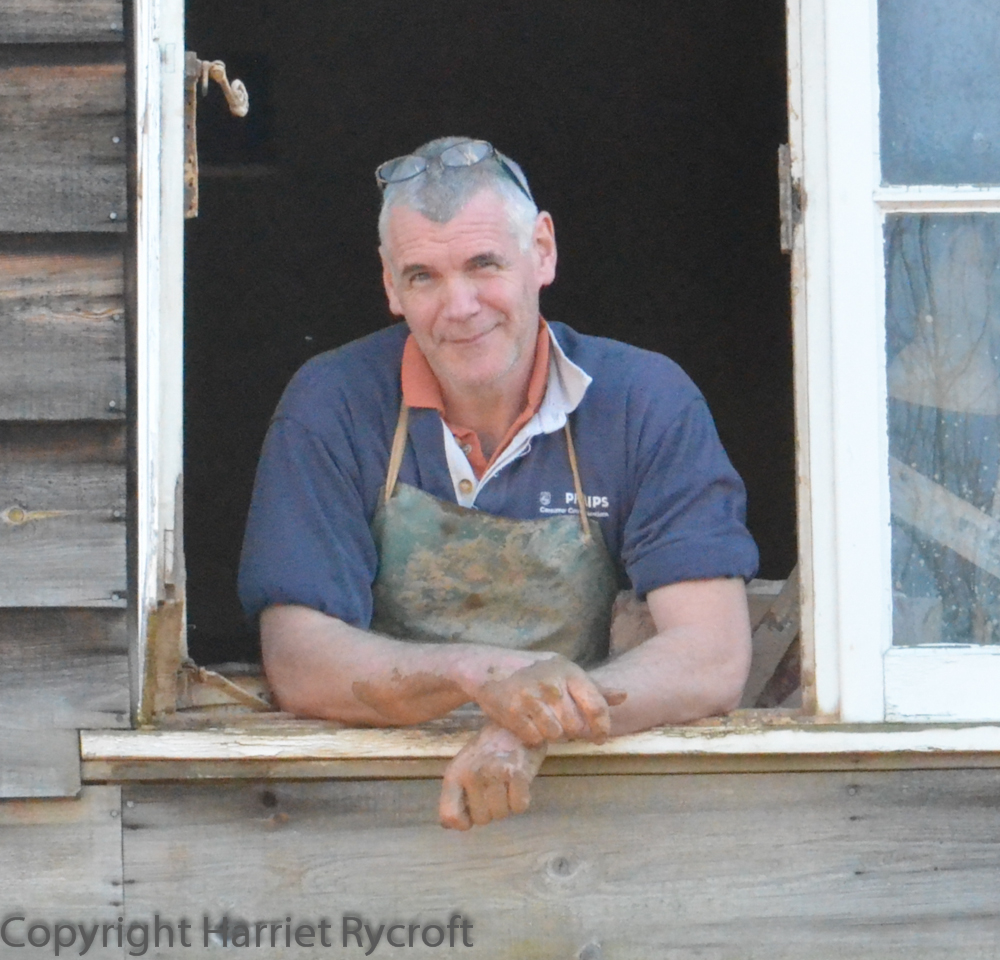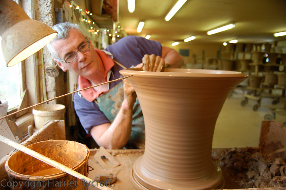 It is Andy who teaches throwing at the one-day pottery workshops here and he's a patient, friendly and funny teacher. All the makers here are friendly so if you come and have a look round they will be pleased to explain what they are doing if they have time, although sometimes they are under pressure for a big order or need to concentrate on a tricky process, so may not have time for a long chat - but we are all proud of the standard of craftsmanship here and would like to show you what goes on.