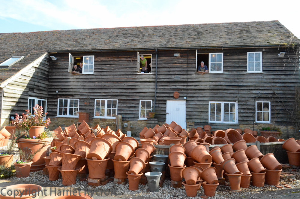 Simon makes a wide range of flowerpots, usually smallish to medium size. We like to tease him that he can't make big pots but of course he can. He also makes lovely mugs and so-on at home, I have a gorgeous, rounded blue one which is a pleasure to drink from and I get VERY ANGRY if anyone steals it at break time!