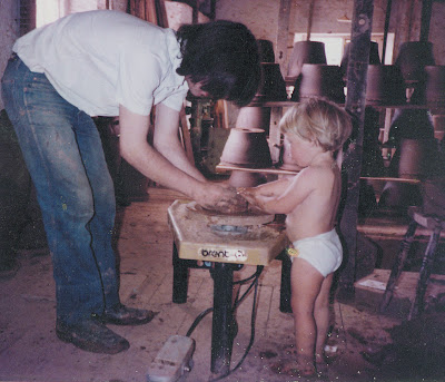 At the far end of the room you'll find Simon Day, who also has about 30 years' pottery experience and has been at Whichford for the last eleven of them. He's a talented musician and every now and then he allows himself to be persuaded to bring one of his many guitars and play and sing for us at work. When we all went to Jim's house in France one year Simon's guitar and the Beatles Song Book came too and we sang raucously into the night. The neighbours must have loved it.