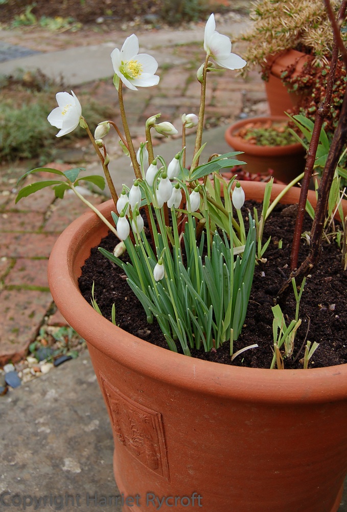 Helleborus niger and snowdrops