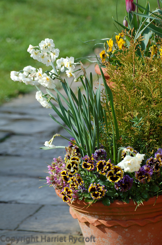 Narcissus 'Bridal Crown' and Pansy 'Frizzle