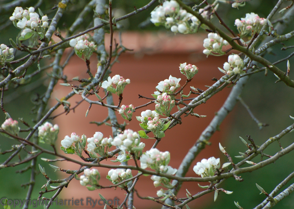 Very few 'white' flowers are purely so. Even the pear blossom coming out this week has a tinge of pink.