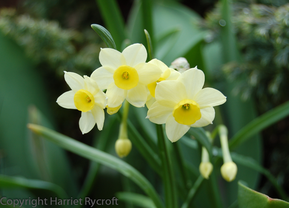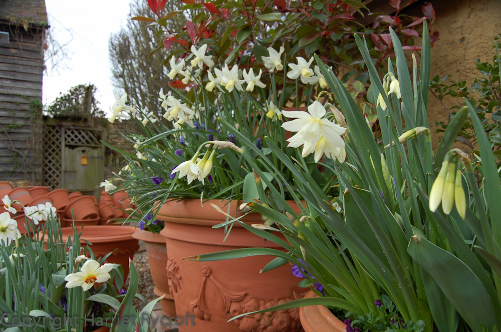 | Narcissus 'Minnow' in the courtyard garden at Whichford Pottery |