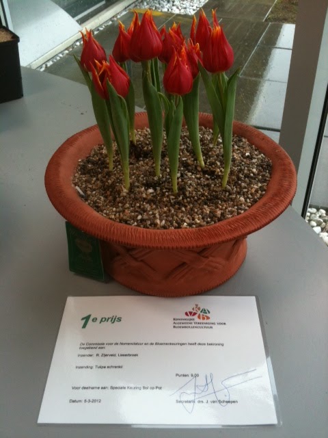 My love of spring bulbs is fed regularly from The Netherlands by René Zijerveld, he is fond of our pots too, and recently emailed me this picture of his prize-winning