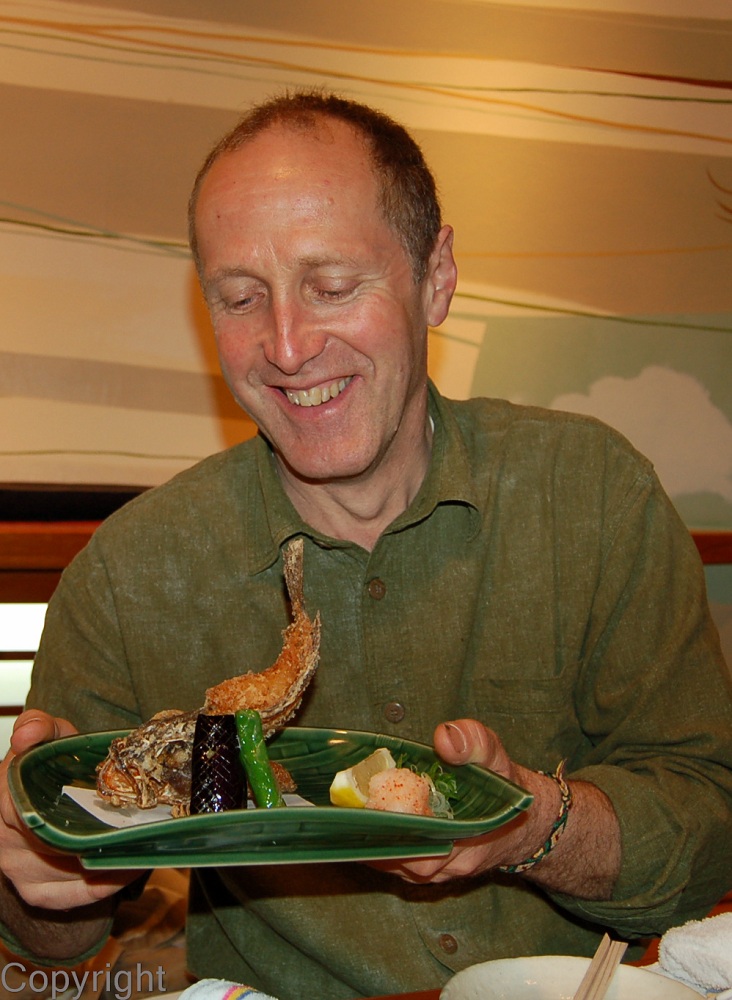 He also takes full advantage of the hospitality. I thought I was doing pretty well, eating (and enjoying) unfamiliar japanese foods but my revered boss munched his way through everything and anything, jet lag or no jet lag. He even seemed to love the mamushi sake he was served in one bar, which had a snake in the bottom of the bottle. I had a sip - tasted vaguely fishy, not a taste I enjoy in an alcoholic beverage.