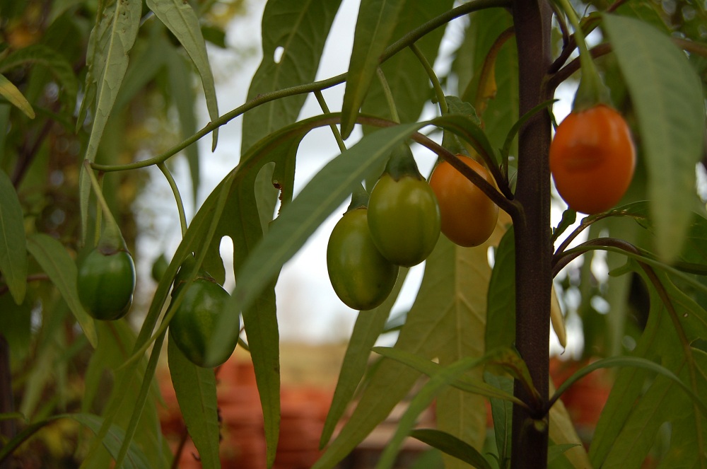 Solanum laciniatum has managed to ripen a few fruits (see my post of 12 Sept) which turn out to be orange. I'm pretty sure they are poisonous, so I won't be reporting on their taste.