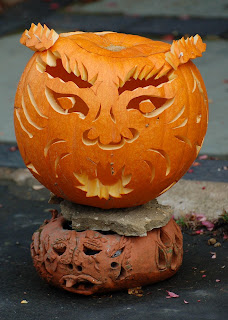 This week started with Hallowe'en, of course. Let's hope Jim and Dominique's carved pumpkin (grown on our compost heap) has kept evil spirits away from the pottery. I feel a bit sorry for the terracotta version underneath it.