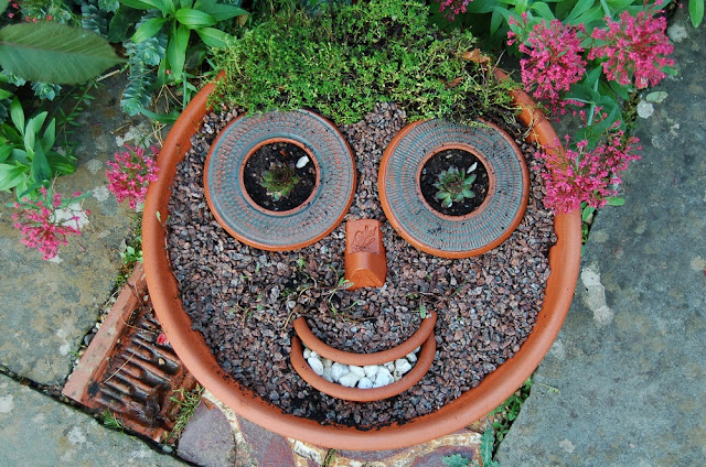 One little diversion on Tuesday November 1st was the planting of this pot face. You may not be able to see it but he has the beginnings of a moustache made of