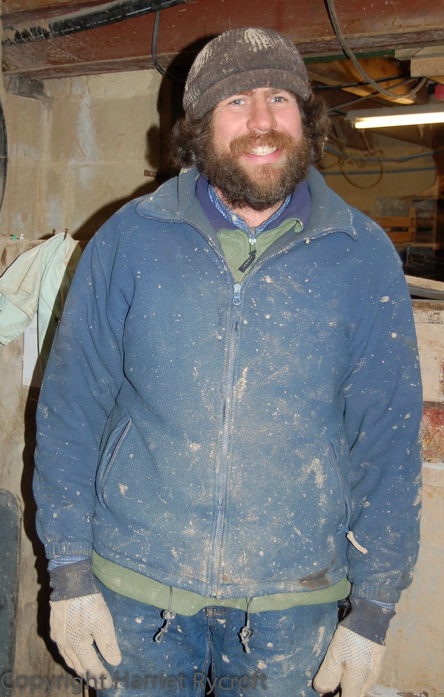The clay room is almost as cold as the garden at this time of year, and the constant dark and damp can make it like Gollum's cave (in fact bats occasionally roost there). It's a tough place to work, and noisy too, full of large, ancient machinery, everything covered with clay. No wonder Brian has developed extravagant winter plumage in an effort to keep warm.