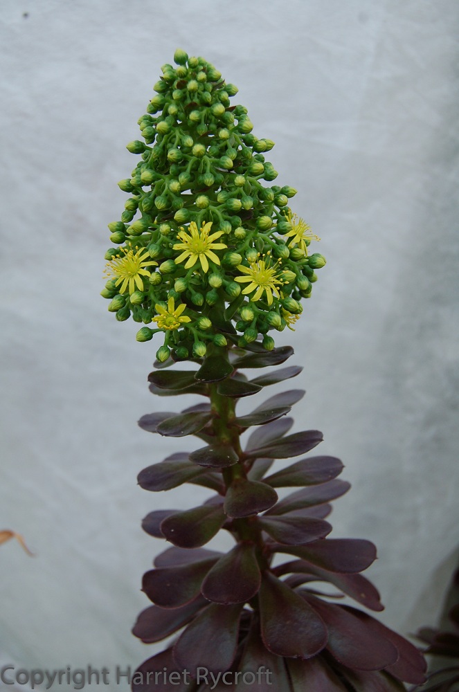Aeonium arboreum 'Zwartkop' flowering