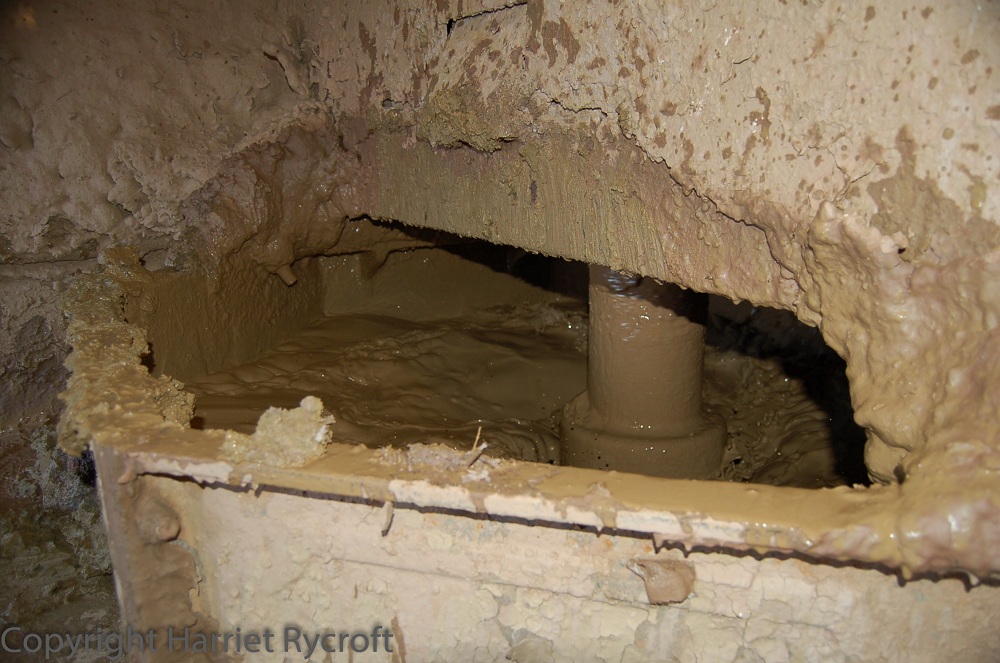 This raw clay and lots of water is put in the blunger, a thing a bit like a giant food processor. Here the clay is mixed thoroughly into a creamy slip. It's at this point that the stones, fossils and so-on settle out and are left behind.