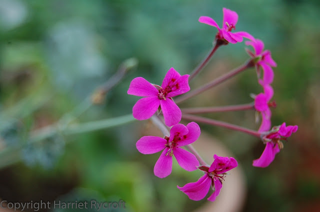 | Pelargonium sidoides 'Sloe Gin Fizz' in the greenhouse at Whichford Pottery |