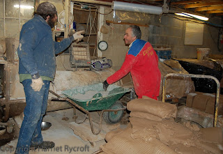 These two are the unsung heroes of the pottery: it is their job to ensure that the makers are provided with an unbroken supply (about five tons a week) of high quality clay, it's a mucky job with no creature comforts and if the consistency of the clay isn't to all the throwers' liking they soon hear about it!