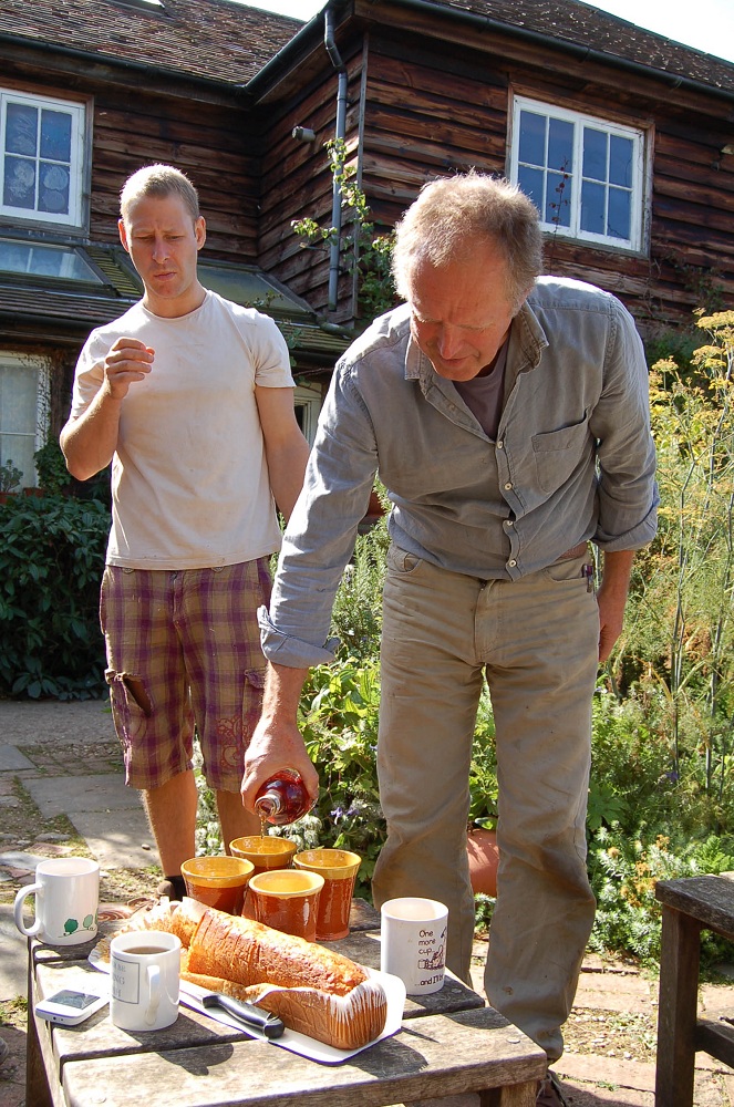 Monday brought warm sun (for about the third time this summer) and the return of Our Great Leader from France. No-one is allowed to travel without bringing back a treat for coffee break - Jim included - and the Pineau de Charentes plus cake went down very well.
