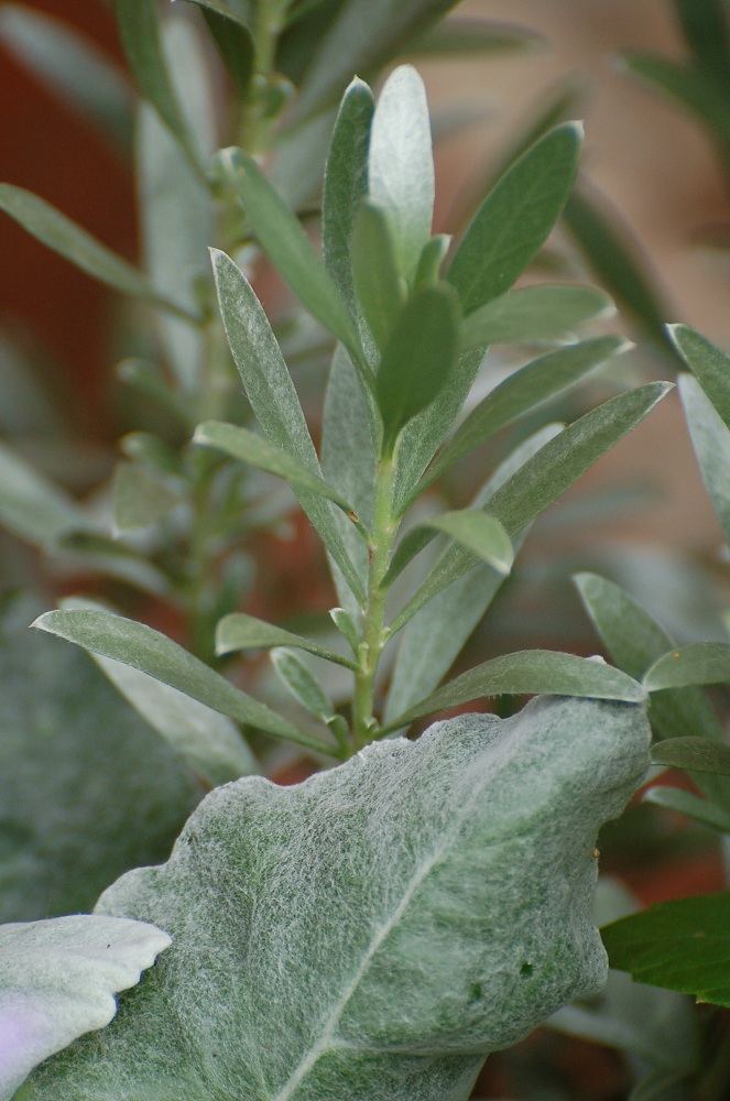 Cineraria maritima 'Cirrus'. Both feel soft and velvety. |