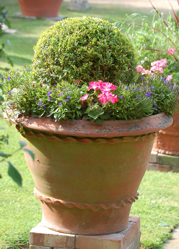 planted with a box ball surrounded by zonal