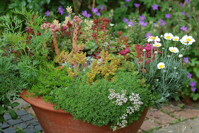 The succulents I planted last week are already looking happier - they always respond surprisingly quickly to fresh compost and lighter conditions than those found in our rather grubby and shaded greenhouse.