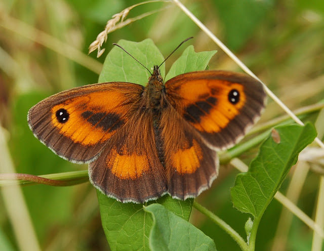| Male Gatekeeper basking on the long grass in the walnut field at Whichford Pottery on Monday this week |