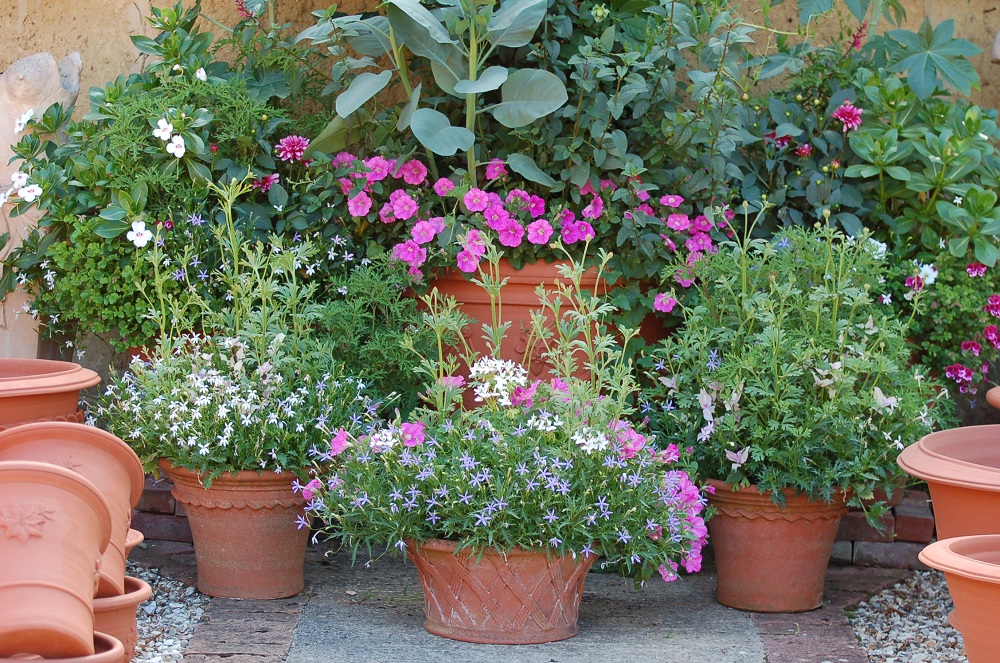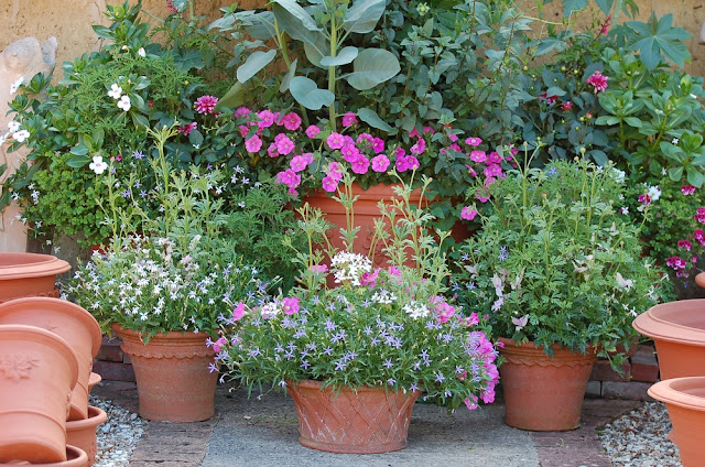 I am a very disobedient gardener for allowing the plants to hide the pots but I do love to see them thrive and I'm sure all the keen gardeners who visit the pottery feel the same. Regular readers will see from this picture that most of the