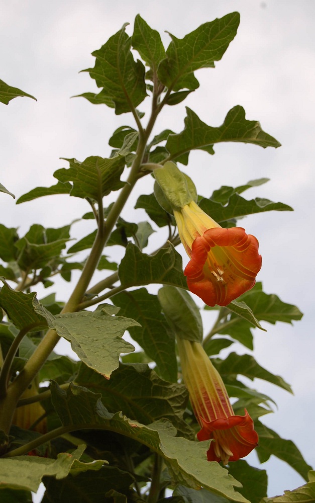 The late season sunshine has meant that my Brugmansia sanguinea has had its moment of glory in the nick of time.