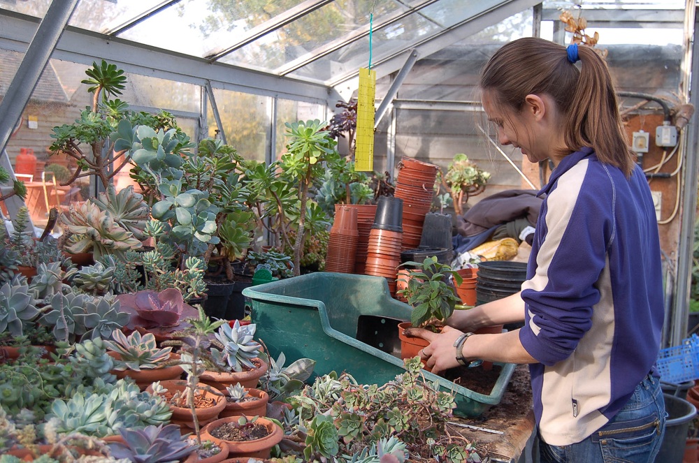 | Donna pots up a Heliotropium arborescens 'Marine' (one for the ident notebook!) |