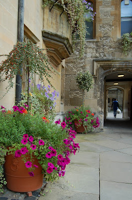 Then I dropped in on Brasenose, my old college. They have some pots which we made for their recent quincentenary, featuring the door knocker the college may be named after. BNC doesn't have a garden as such, it has two quads, Old and New, linked by a small space called The Deer Park. This is either a wry reference to the much grander Magdalen's real deer park or there is a story of a stag being hunted all the way from Blenheim to Oxford, only to meet its grisly end at Brasenose. Not so much a garden as a gap.