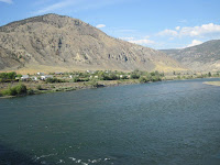 J'ai fait le camp au bord de la Thompson, dans le wild, à 1-2km de Spences Bridge. Son eau n'est pas aussi froide que celle de la Skeena, mais c'est tout de même très agréable de s'y baigner. Je suis en train de souper au café du village. Super pcq'aujourd'hui j'ai perdu ma bouteille pour le réchaud, que je vais devoir remplacer à Vancouver. Pour l'instant, je ne peux rien cuire.