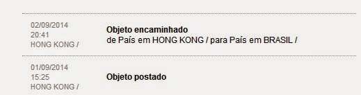 O problema agora era que se acabaram os CPLD´s. No site da Farnel Brasil não havia mais em estoque. Pedi para orçar. Esperei uma semana e nenhuma resposta da Farnell. Fui no Ebay e comprei os CPLD´s e mais alguns componentes no dia 15/08/2014 sendo que até o momento desta postagem estes componentes mantém o status no site do Correios conforme podemos ver abaixo: