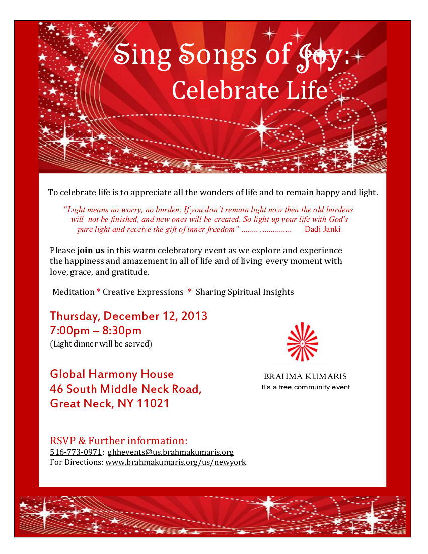 our holiday program Sing Songs of Joy: Celebrate Life. Please join us for this spiritually