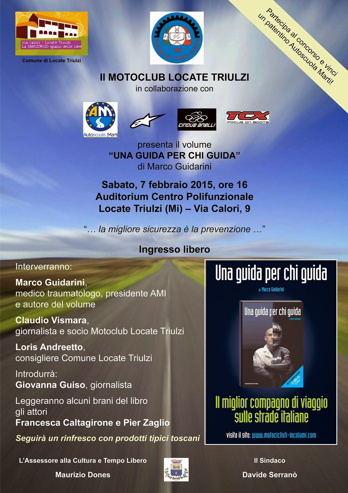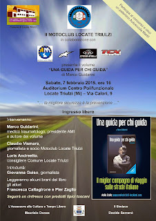invito 7 febbraio 2015 presentazione libro sicurezza motociclisti Posted: 28 Jan 2015 11:00 AM PST Il Motoclub Locate Triulzi ha il piacere di invitarti sabato 7 febbraio ore 16.00 all'Auditorium di via Calori, 9 a Locate di Triulzi (Mi), a questa importante iniziativa dedicata alla sicurezza stradale. Per i ragazzi partecipanti all'evento grande concorso con ricchi premi: patentino AM, casco modulare, guanti da moto in pelle, dvd "Morbidelli storie di moto e uomini veloci" e numerosi altri gadget. Ti aspettiamo! Al termine si terrà un rinfresco. INGRESSO LIBERO. |